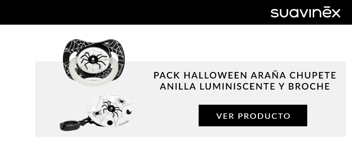 - Desde que nace hasta, más o menos, los 6 u 8 meses, tu bebé no conocerá lo que es el miedo. Si la noche de los muertos vivientes te pilla en esta edad, puedes usar los chupetes y broches de Halloween de Suavinex para completar su disfraz, ¡no le dará miedo nada! Tenemos diferentes modelos como el broche Halloween caramelos lila con diferentes dibujitos de Halloween con caramelos y calaveritas.